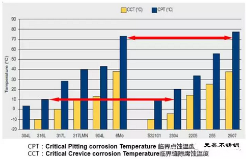 (2)除耐應(yīng)力腐蝕性能外,其他耐局部腐蝕性能都優(yōu)于鐵素體不銹鋼。