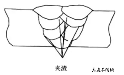 夾渣是指焊后溶渣殘存在焊縫中的現(xiàn)象。