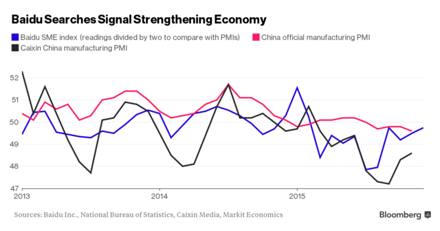 這一非官方的制造業(yè)經(jīng)理人指數(shù)顯示,12月中國經(jīng)濟企穩(wěn)。百度的預(yù)測為50.2,高于11月官方PMI 49.6的水平。