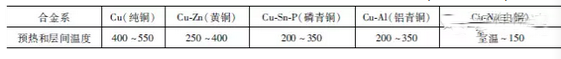 表2 銅合金焊條電弧焊接時(shí)合理的預(yù)熱和層間溫度(單位:℃)