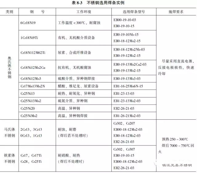 1) 必須根據(jù)母材的成分、產(chǎn)品使用要求正確地選擇焊條。表8-3列出了幾種國產(chǎn)焊條型號及其特點,以供參考。由于不銹鋼金屬系列很多,每一牌號焊條都有其最適用的工作條件,選擇時要適當(dāng)。奧氏體鋼焊條,按藥皮類型來說,常用的有低氫鈉型和鈦鈣兩類。鈦鈣型焊條如EB0-19-10-03、EB0-18-120Mo2-03等,電弧穿透淺,適于薄板平焊位置焊接。若用直流焊接電源時,也可進行全位置和中板的焊接,但要求技術(shù)熟練。低氫鈉型焊條如EB0-19-10Nb-15、EB1-23-13-15等適于全位置和中厚板的焊接,不易產(chǎn)生夾渣、未焊透等缺陷。從抗裂角度考慮,傾向于采用低氫鈉型焊條,但焊縫成形不如鈦鈣型,因而對耐蝕性也有些不利。(http://www.checkdis.com)