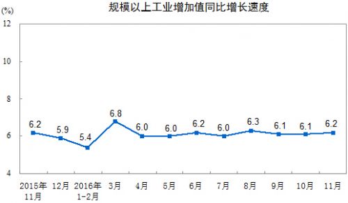 2016年11月份規(guī)模以上工業(yè)增加值增長6.2%