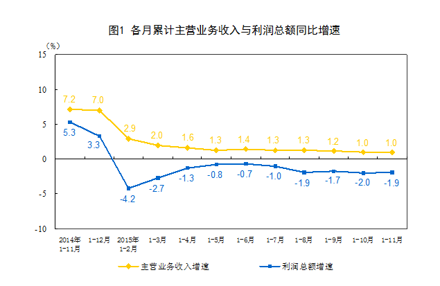 中國11月規(guī)模以上工業(yè)企業(yè)利潤同比下降1.4%,前值下滑4.6%。1-11月,全國規(guī)模以上工業(yè)企業(yè)實現(xiàn)利潤同比下降1.9%,降幅比1-10月份收窄0.1個百分點。